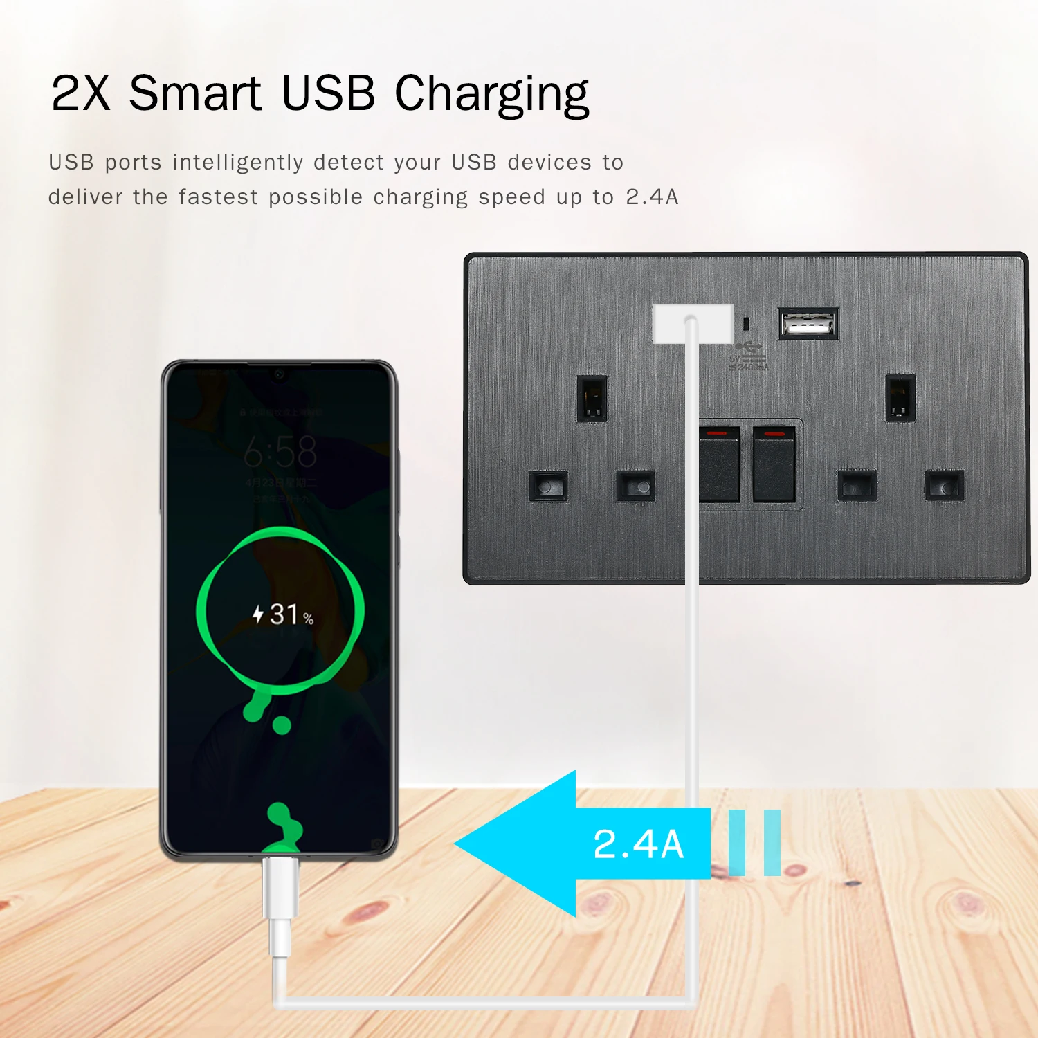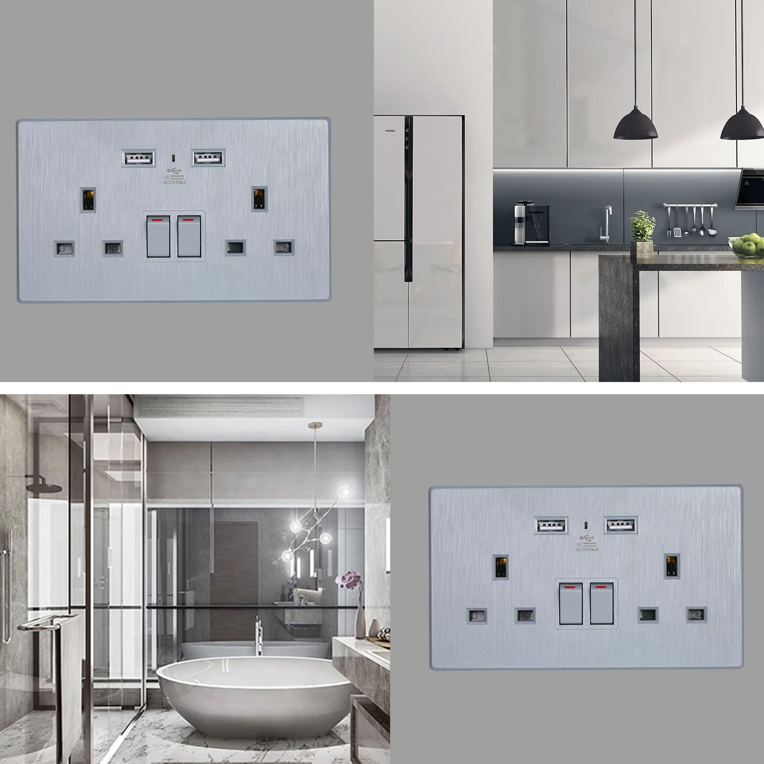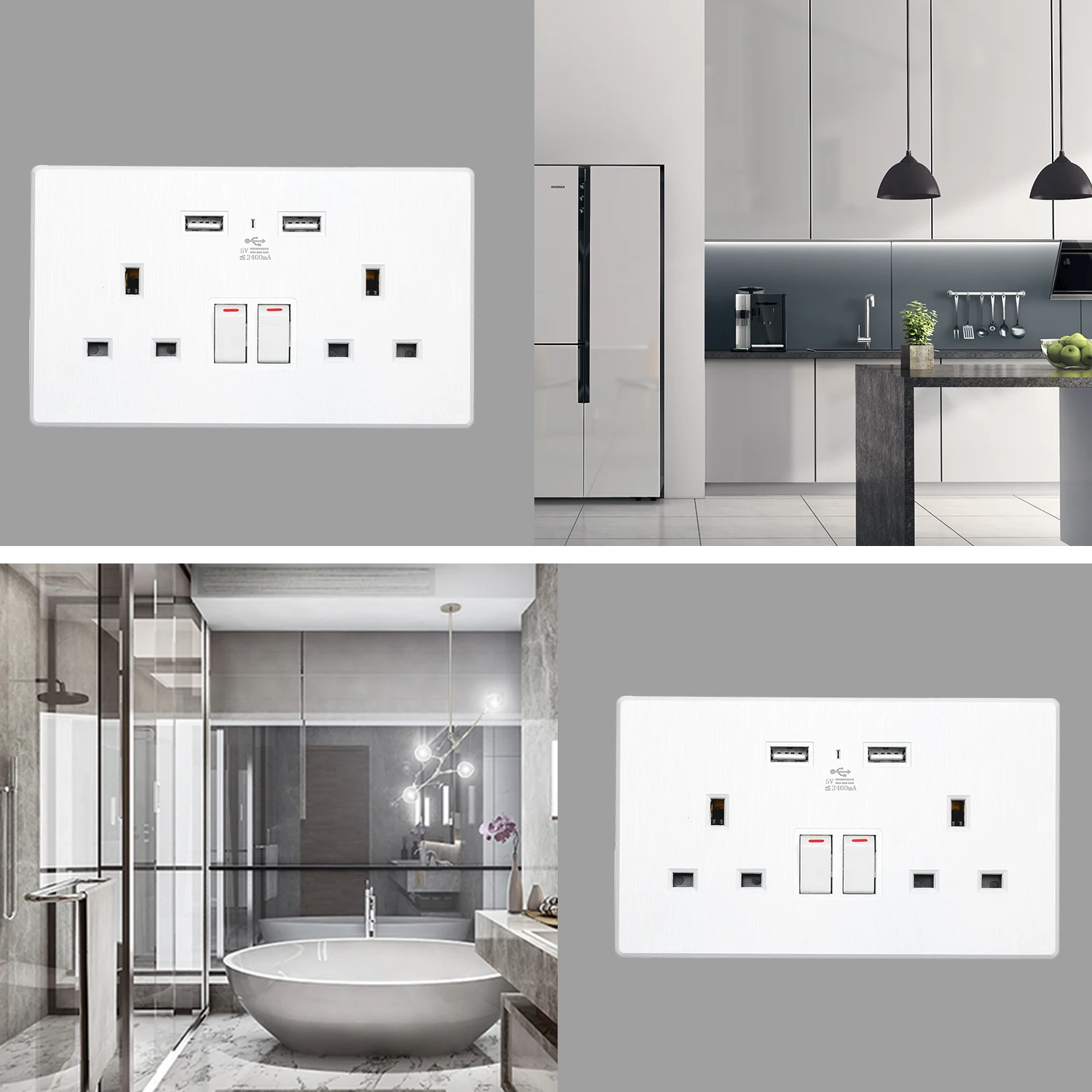 Компактный дизайн: квадратная настенная розетка небольшого размера имеет 2 разъема, 2 usb-порта и 2 кнопки включения/выключения, обеспечивает 4 отдельных электрических розетки для питания или зарядки ваших гаджетов.