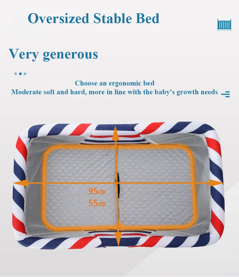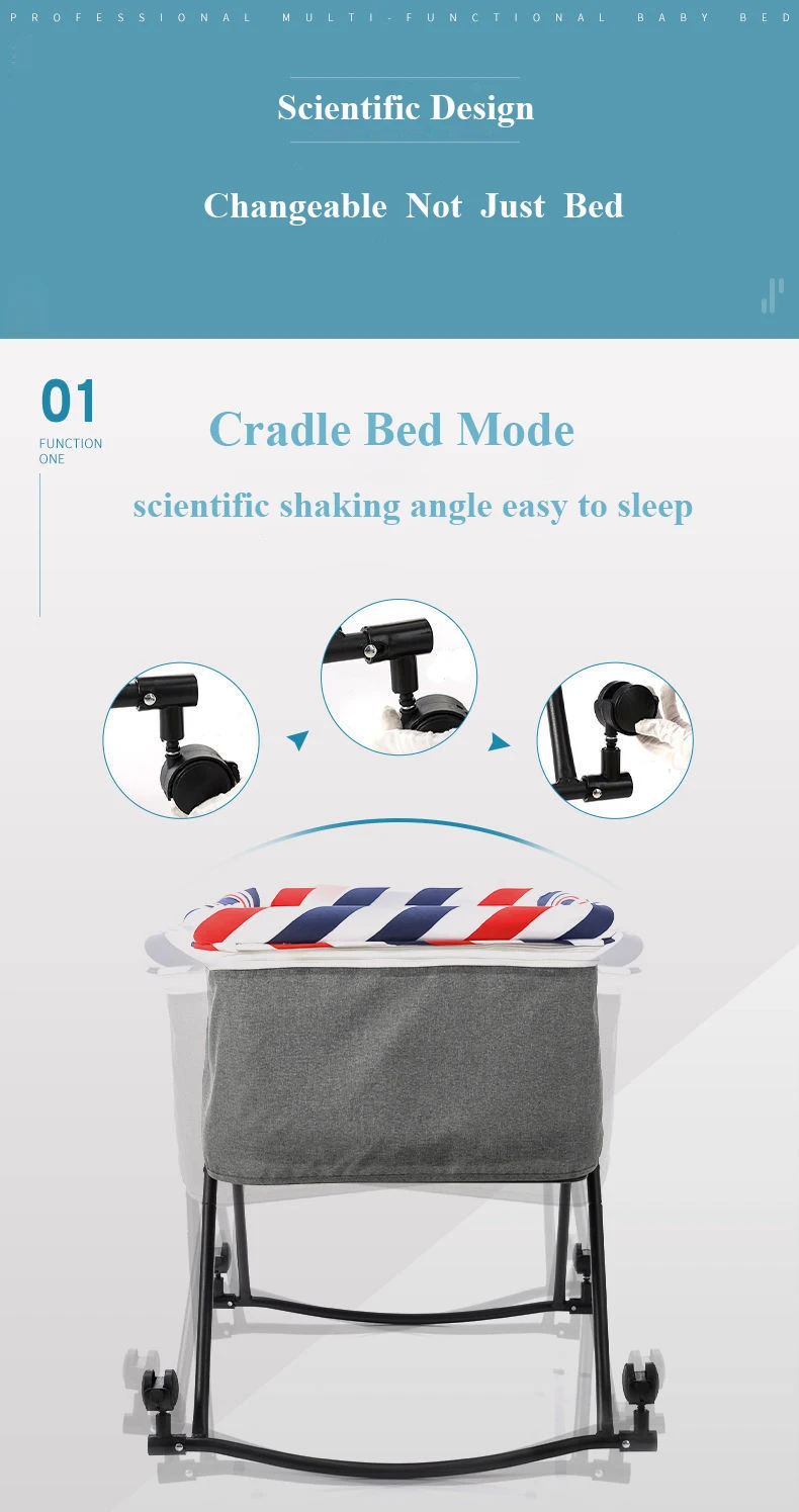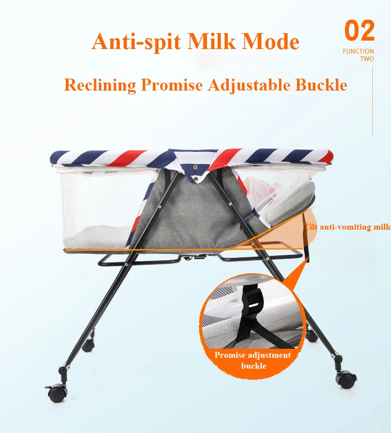 Функция: эта кровать-складной светильник, подходящий для детей в возрасте от 0 до 18 месяцев. Его можно сложить одной кнопкой и одной кнопкой. Колыбель можно отогнуть, чтобы предотвратить рвоту.