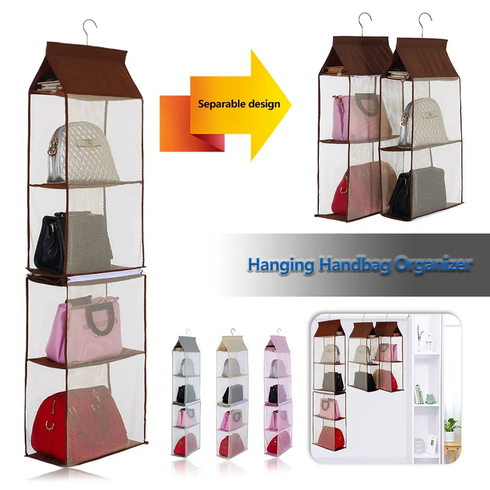 Как организовать сумочки и кошельки? Нужен кошелек-органайзер для ухоженного шкафа? Этот подвесной органайзер для шкафа станет хорошим решением. Вы можете быстро организоваться с этим отделением-органайзером, сохранить ваш гардероб чистым и аккуратным. Макс 6 отсеков позволяет хранить все, от взрослых до детей, такие как сумочки, свитера, игрушки. Прочные металлические вешалки в комплекте, легко висят на стандартном стержне шкафа, чтобы держать neverfull кошелек организованным. Сетчатый прозрачный дизайн позволяет легко просматривать то, что храниться, и выбирать нужный вам, экономит ваше время.