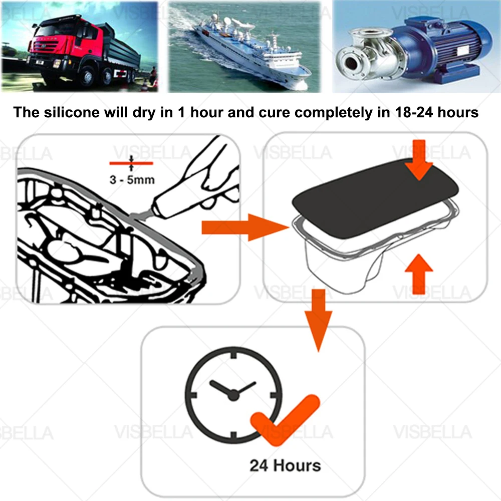 VISBELLA высокотемпературный RTV силикон предназначен для автомобильного производства склеивания и герметизации. Этот продукт является одним из компонентов RTV силиконовый герметик, отверждения полностью без возбуждающего запаха выпуска. Кислота и нейтральный затвердевается в эластичную резиновую полоску.