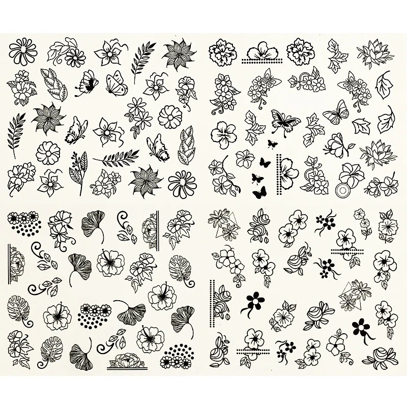Specification: Quantity: 1 big sheet contain 12 small sheets. Pattern: as the picture shows Package Contents: 1 big sheet Nail Water Decals Nails Application: 1.Trim, clean and polish the fingernails; paint the background color on the fingernails and dry it out. 2. Remove the film of product,cut out the patter and plunge it into water 10-20 seconds. 3. Moisten the fingernails, stick the patter in position. 4. Sop up the water with a paper towel and blow dry. 5. Cap with clear nail polish and blow dry. Warning: keep reach out of children.