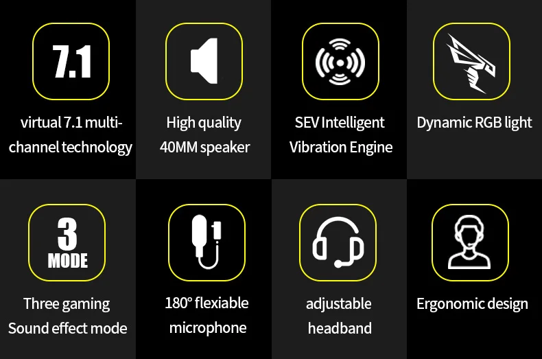 Виртуальная 7,1 стерео RGB световая вибрационная гарнитура с микрофоном для PUBG компьютера