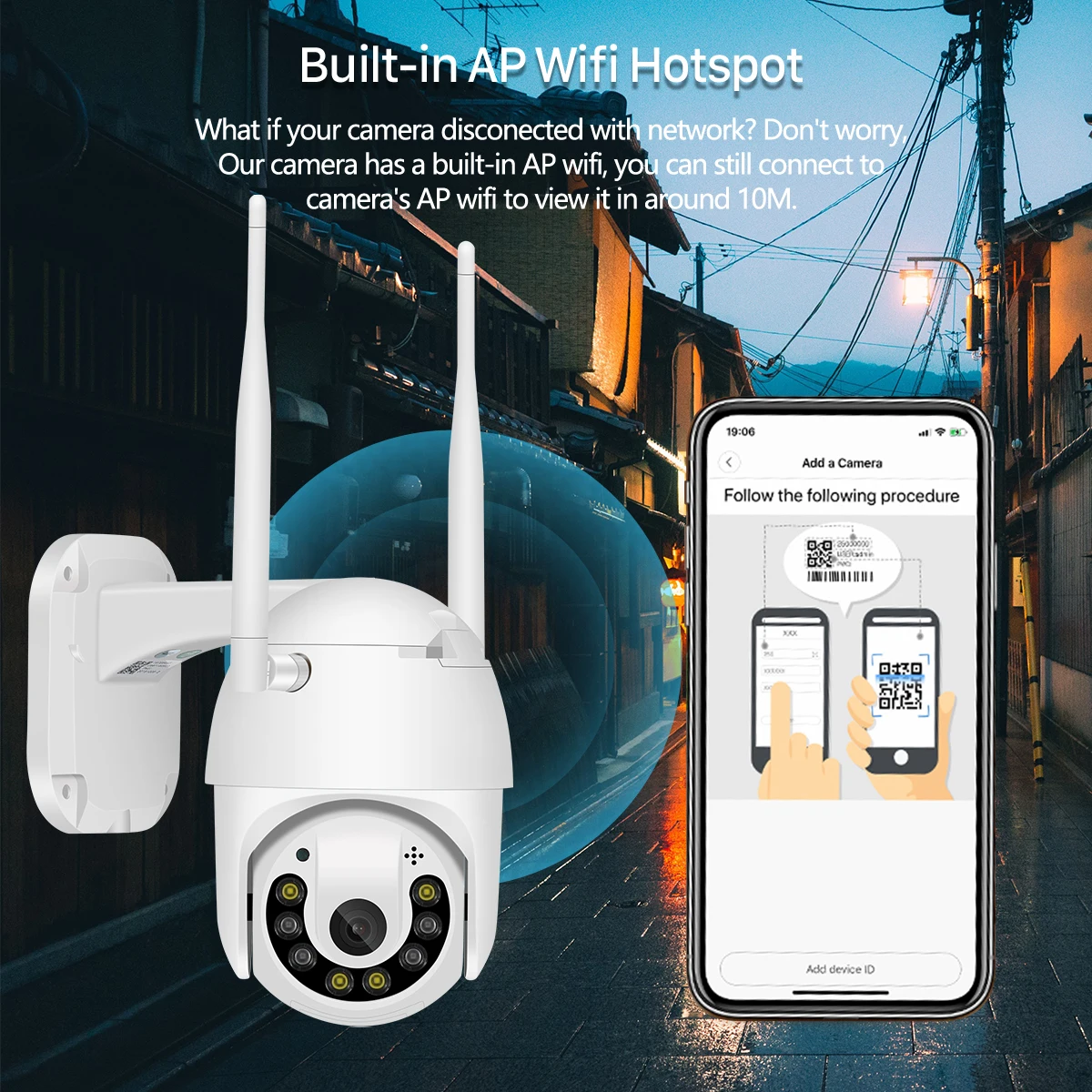 270 ° PTZ панорамирование/поворот по вертикали 90 °, вы можете увидеть больше деталей, управляя им, чтобы перемещаться в приложении на вашем телефоне удаленно.