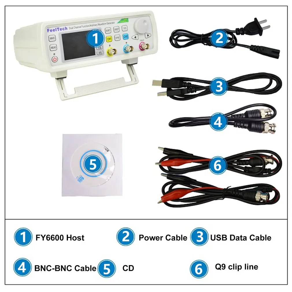 1. этот двухканальный функциональный генератор сигналов FY6600 сочетает в себе несколько функций s в одном, таких как генератор сигналов функции, генератор сигналов произвольной формы, генератор импульсов, аналоговый/цифровой модулятор, VCO, развертка, счетчик и частотомер и т. Д.