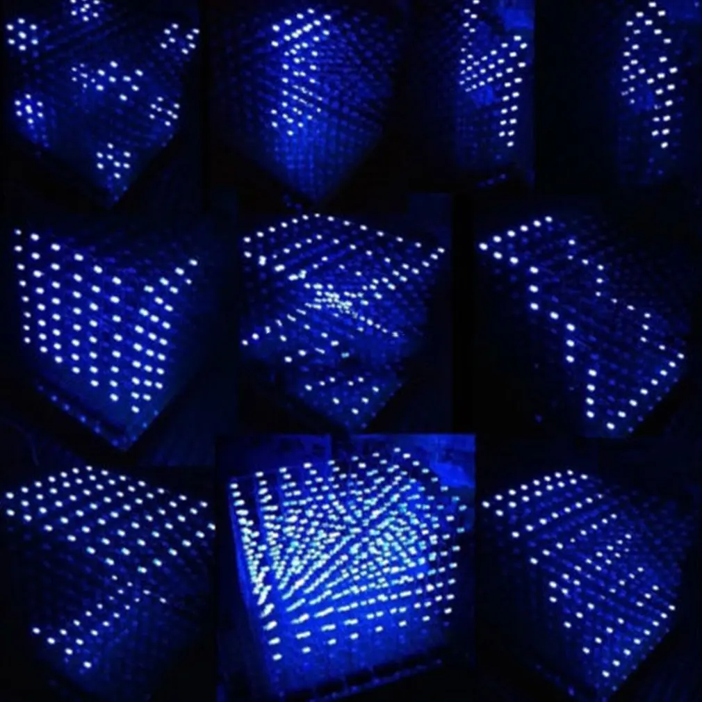 Есть два вида 3D светодиодных ламп 8x8x8 в квадрате, один светодиодный дисплей только синего цвета, другой может отображать красный цвет.
