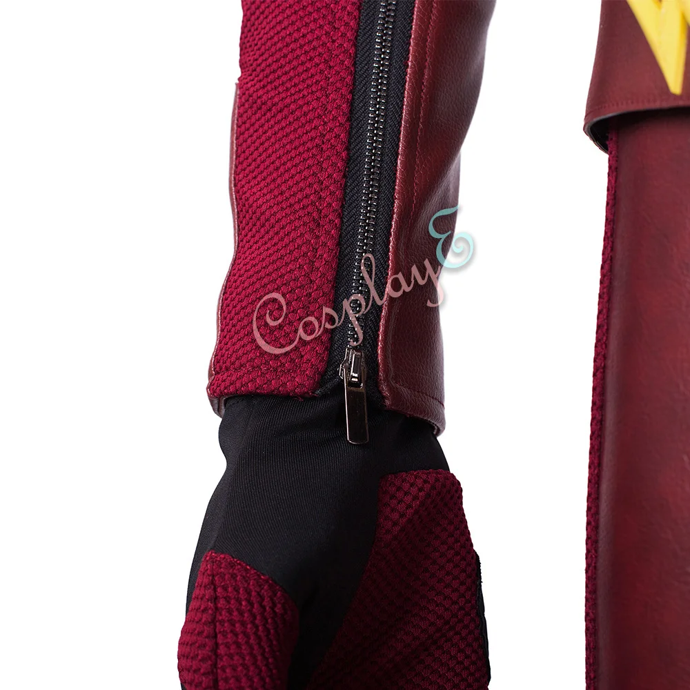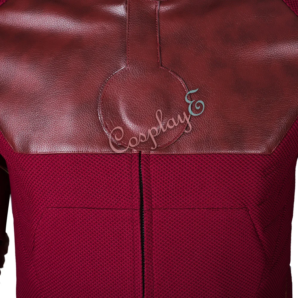 Фильм: флэш Сезон 1 Персонажи: блестящие костюмы Посылка включает в себя: куртку, брюки, ремень, перчатки, запястье, маску Материал: из искусственной кожи; Kint