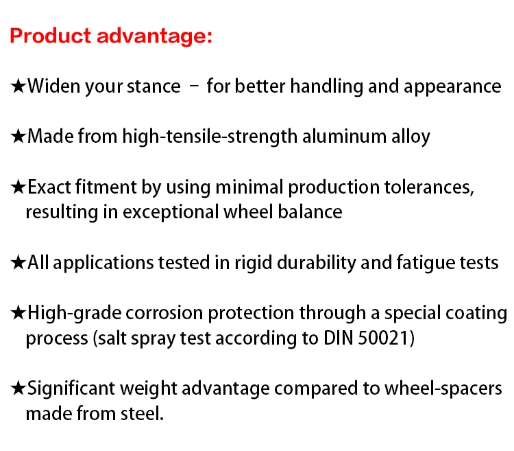 ♦ Значительное преимущество веса по сравнению с колесными Проставками, изготовленными из стали