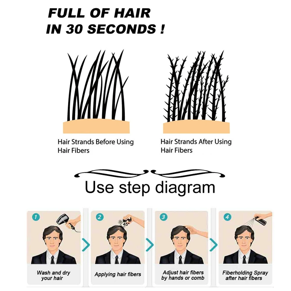 Увеличивает связь между волосами и строительными волокнами волос для оптимальных результатов толщины и полноты. Можно использовать как спрей для волос, подходит для всех типов волос для укладки волос. Подходит как для мужчин, так и для женщин.
