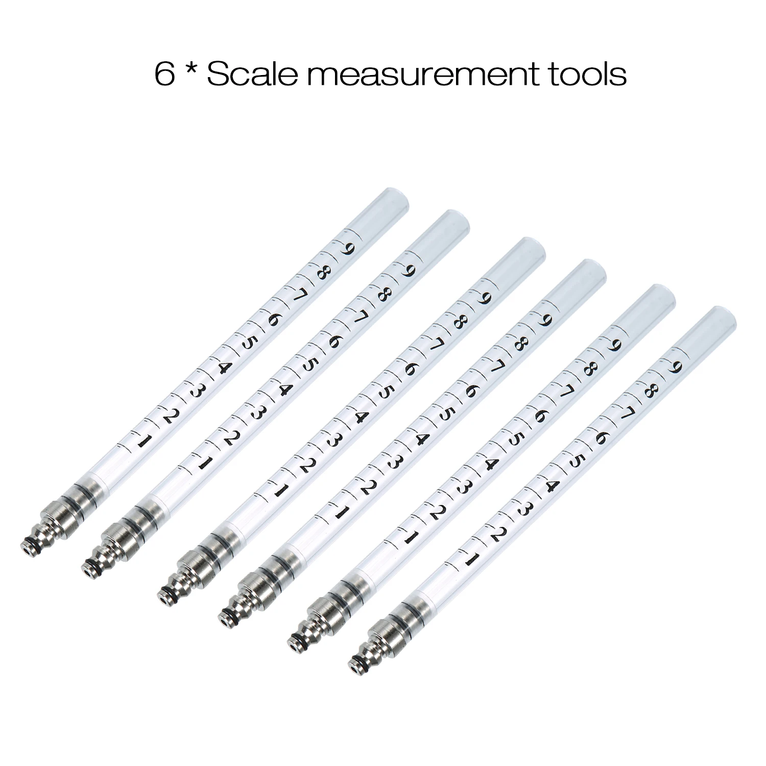 Шесть мерных стаканчиков, каждая из которых имеет трубку 70 см для более точной оценки.