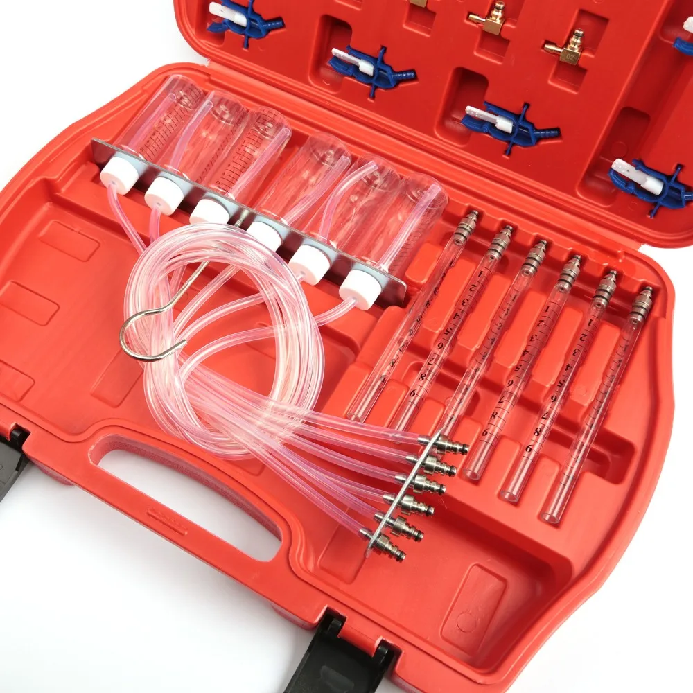Этот набор инструментов предназначен для измерения количества топлива форсунки возвращаются в бак депозита, и его можно использовать для идентификации поврежденных или засоренных инжекторов.