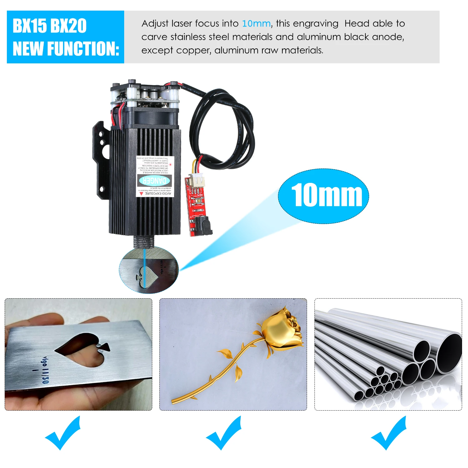 Отрегулируйте фокусное расстояние до 10 мм, может вырезать металл из нержавеющей стали и алюминиевый черный анод (кроме меди, алюминиевого сырья).