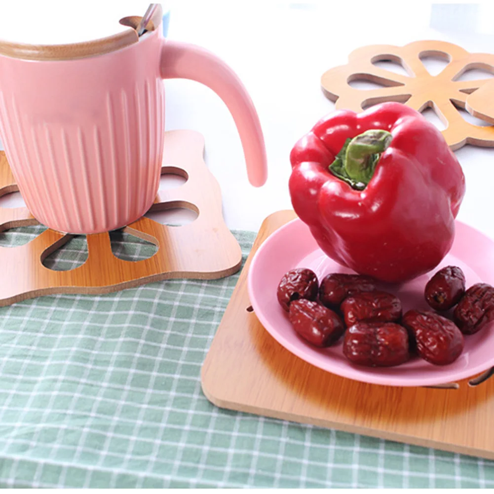 Полый деревянный Теплоизоляционный нескользящий коврик для чаши ужина