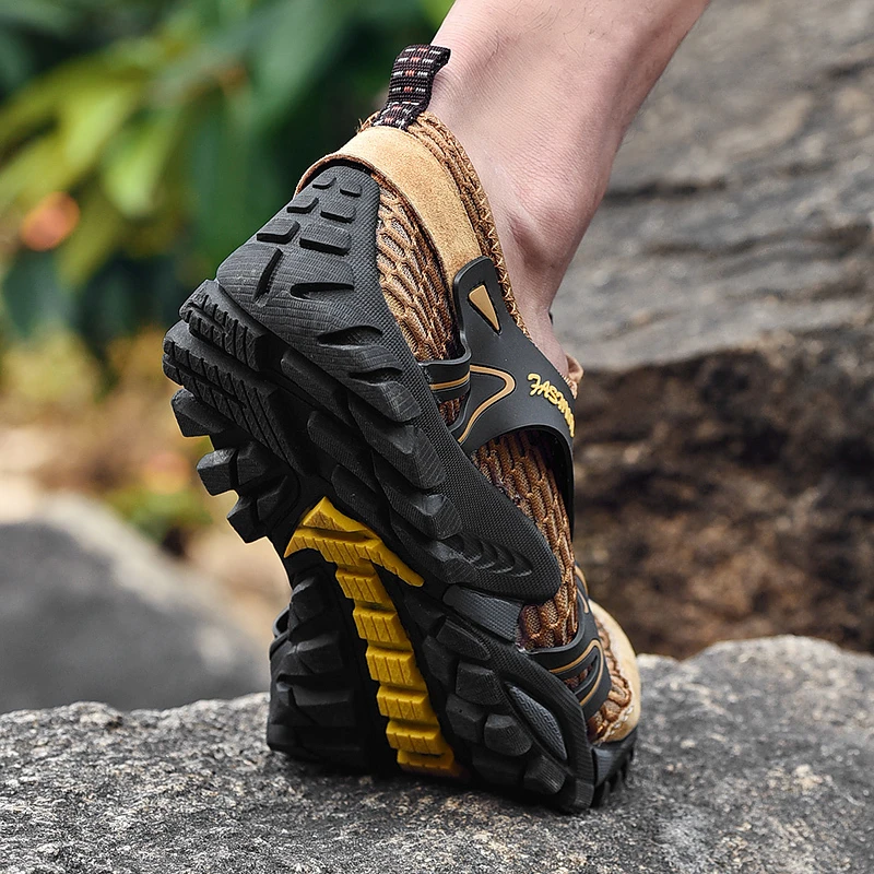 Летняя Повседневная пляжная обувь; Мужская водонепроницаемая обувь; Уличная туристическая обувь дышащая сандалии; Обувь без шнуровки; Сетчатые кроссовки; Треккинговые сандалии