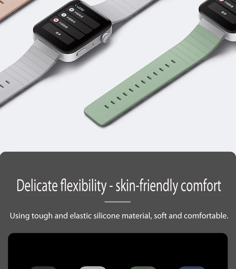 * Изготовлен из чистого мягкого и гибкого силикона: очень удобно носить, обеспечивает мягкую амортизацию на запястье и предотвращает раздражение кожи.