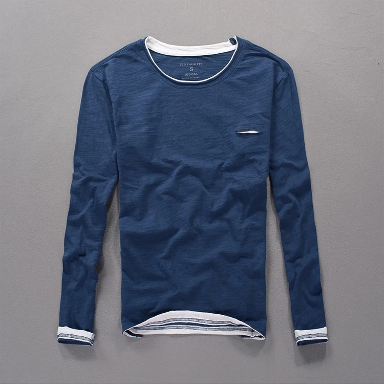 Мужская весенне-осенняя Модная брендовая футболка в японском стиле из бамбука с дырками, облегающая футболка с длинным рукавом, мужская повседневная футболка