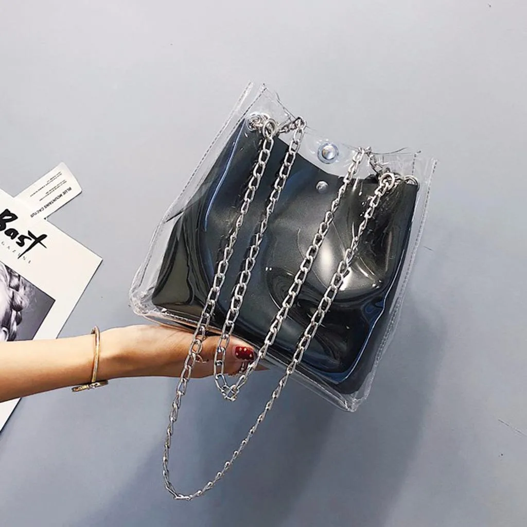 Женские сумки на цепочке, комбинированная мини-сумка, Маленькая прозрачная сумка, популярная простая дикая модная повседневная темпераментная сумка H1