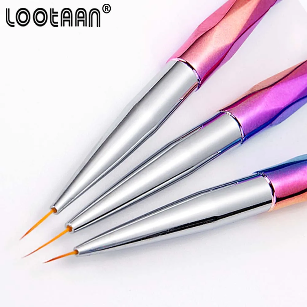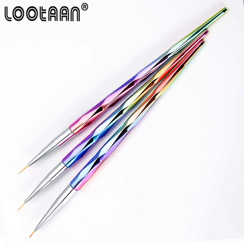3 шт./компл. УФ-гель рисунок Покраска ногтей кисть для подводки акриловый Фрезер для ногтей cо шлифовальными ручка французский ногтей разноцветные Gourd металлическая ручка для ногтей DIY инструменты для маникюра