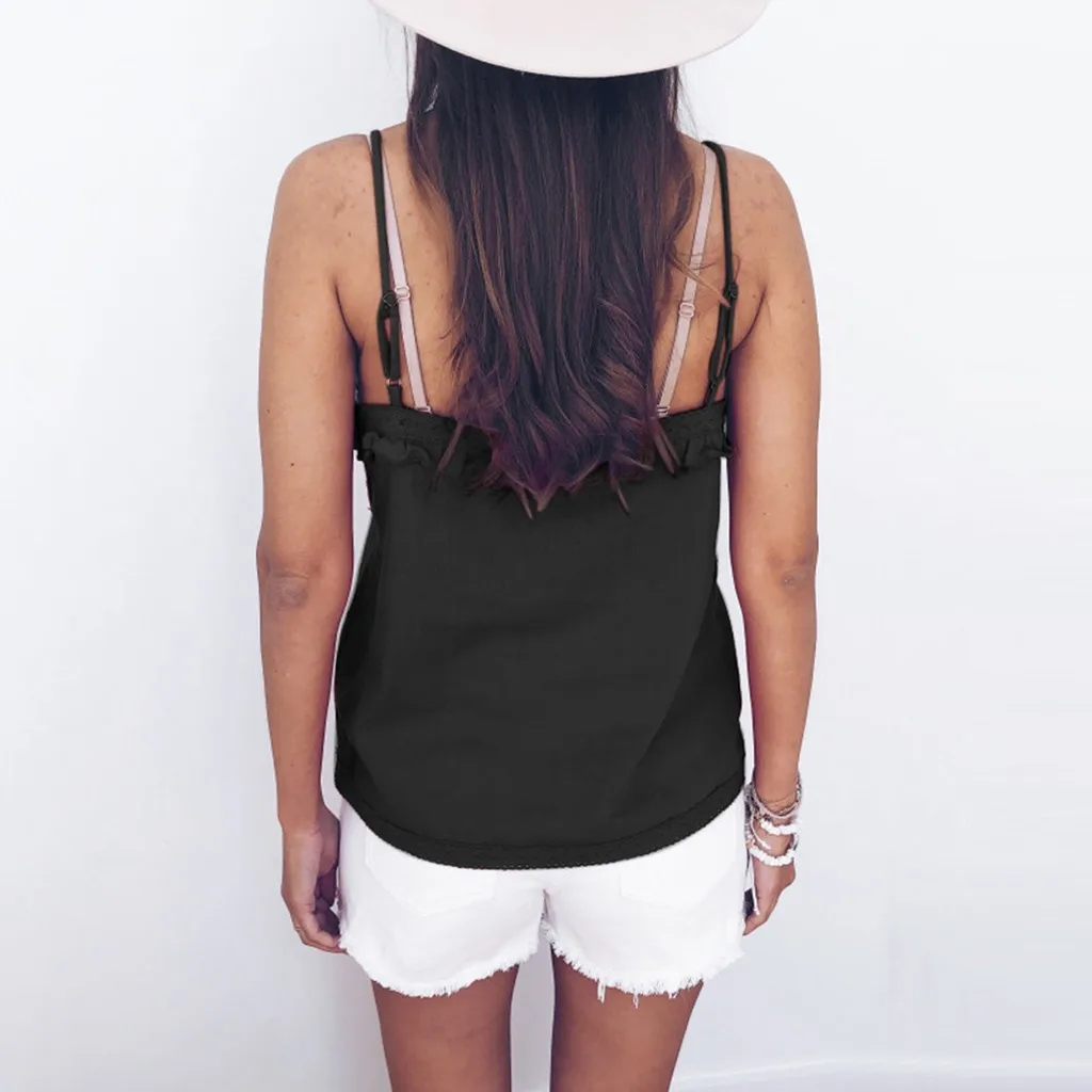 Женский жилет 2020 Модный летний кружевной Топ на бретелях сексуальный однотонный кружевной Топ без рукавов с v-образным вырезом топы размера плюс S-2XL Топ женский 50 *