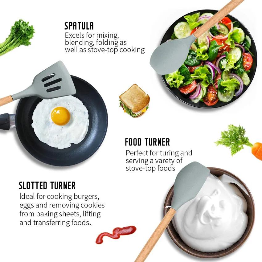 1.Гигиеничность: твердая силиконовая поверхность на этих кухонных принадлежностях означает отсутствие щелей для роста бактерий;