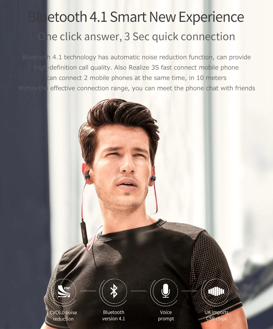 Технология Bluetooth 4,1 имеет функцию автоматического шумоподавления, может обеспечить высокое качество вызова. Также осуществите 3S быстрое подключение мобильный телефон