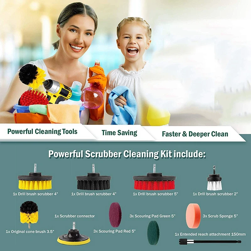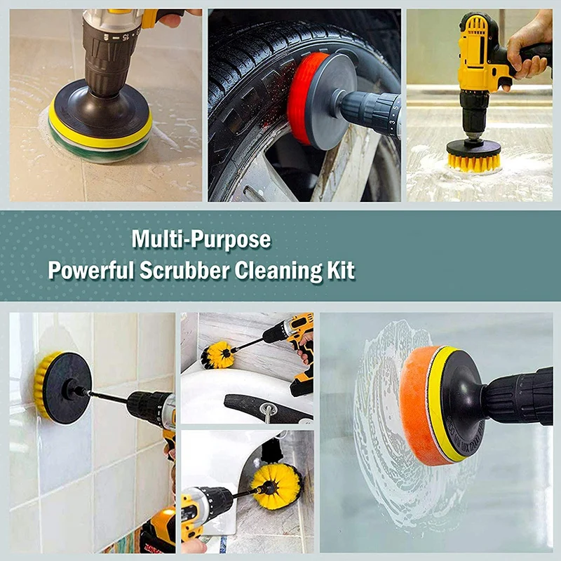 Универсальные принадлежности для буровых щеток-этот комплект для буровых щеток позволяет использовать любое приложение для очистки, идеально подходит для заточки, ванны, кирпича, обивки, раковины, душа, туалета, плитки, мрамора, керамика, ковер, автомобиль, колесо, очистка поверхности ванной комнаты. Дополнительно скрабы используется для удаления минерального депозита из посуды и кухонных раковин. Нейлоновые щетинки не царапают ваши поверхности ванной и душевой плитки.