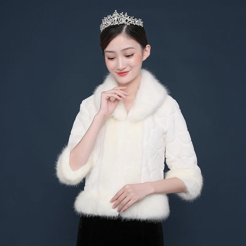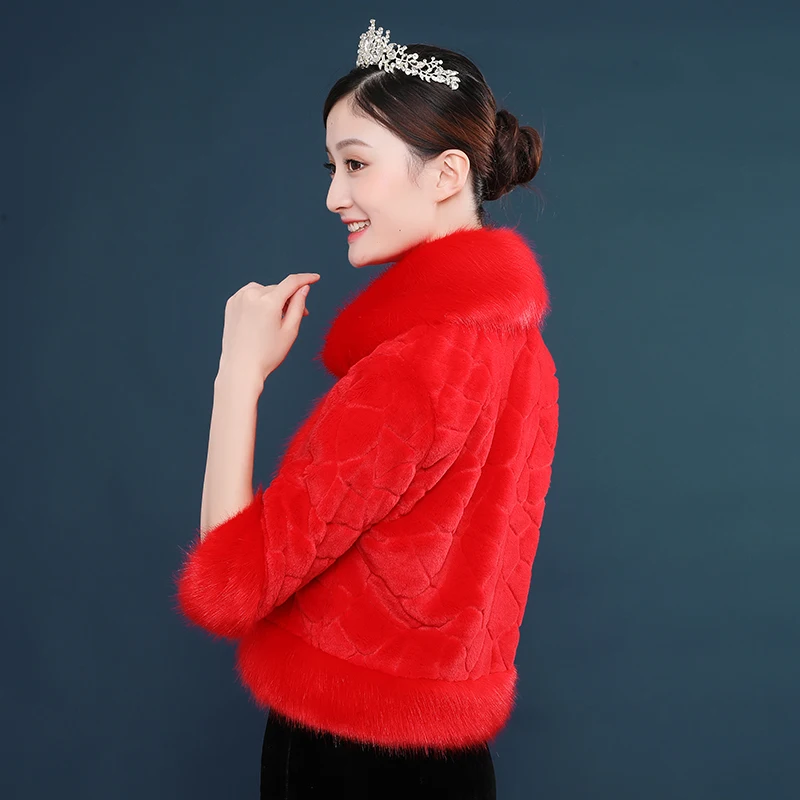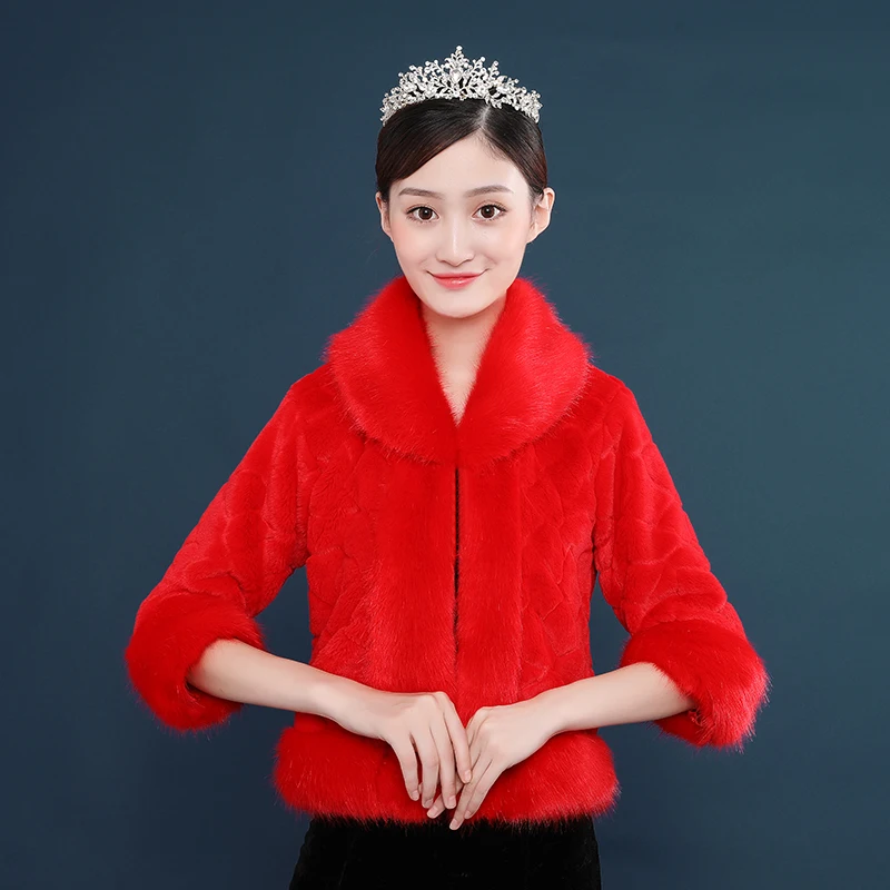 Новинка 2020 Женское пальто из искусственного меха Красная белая куртка из искусственного меха 3/4 с длинными рукавами для свадьбы Вечерние платья свадебное болеро накидка
