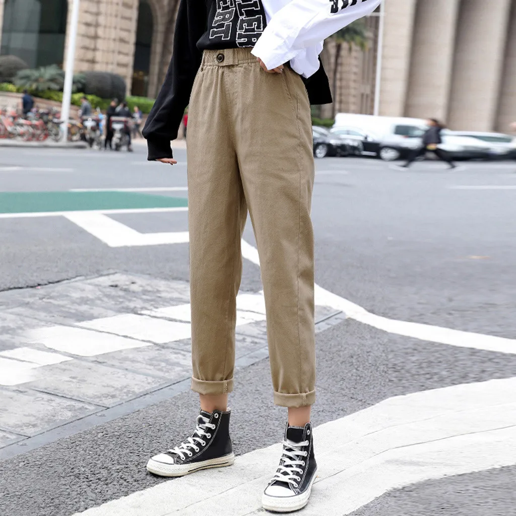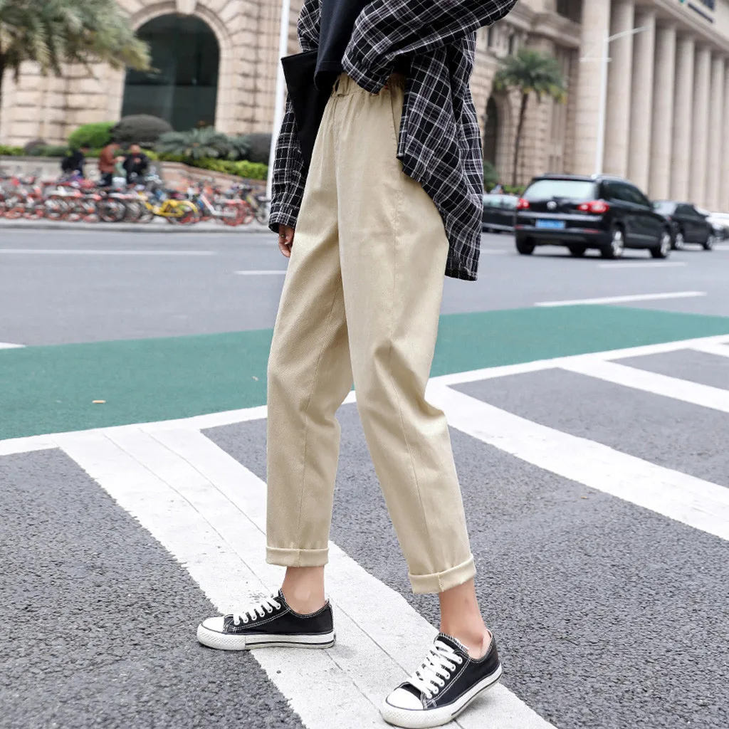 Женские однотонные повседневные свободные прямые брюки с высокой талией; Шаровары; Сезон весна-лето