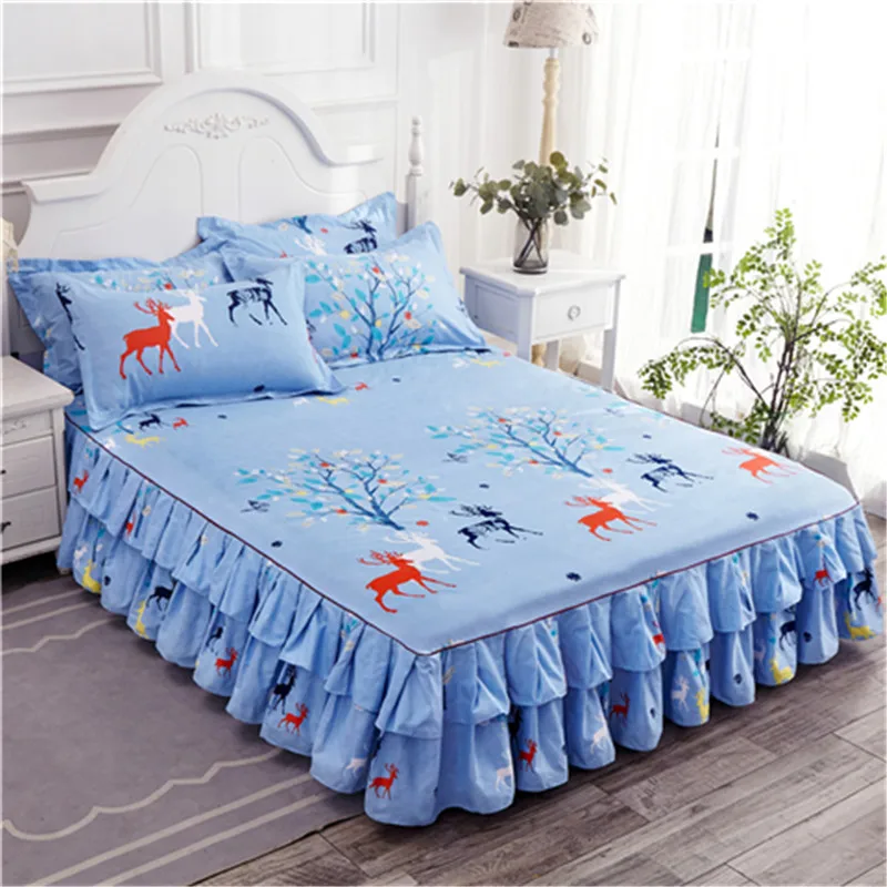 Blue Heart Bed skirt Or Pillowcase Flower Leaf Rose Printed Fitted Sheet Non-Slip Floral Mattress Cover Full King Home Textile