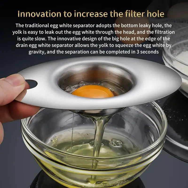 Есть 3 больших круглых слота утечки в нижней части, что позволяет яичному белку легко и быстро фильтровать. И затонувший центральный лоток может сделать яичный желток течь автоматически.