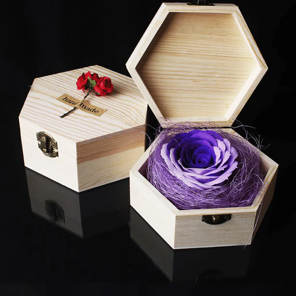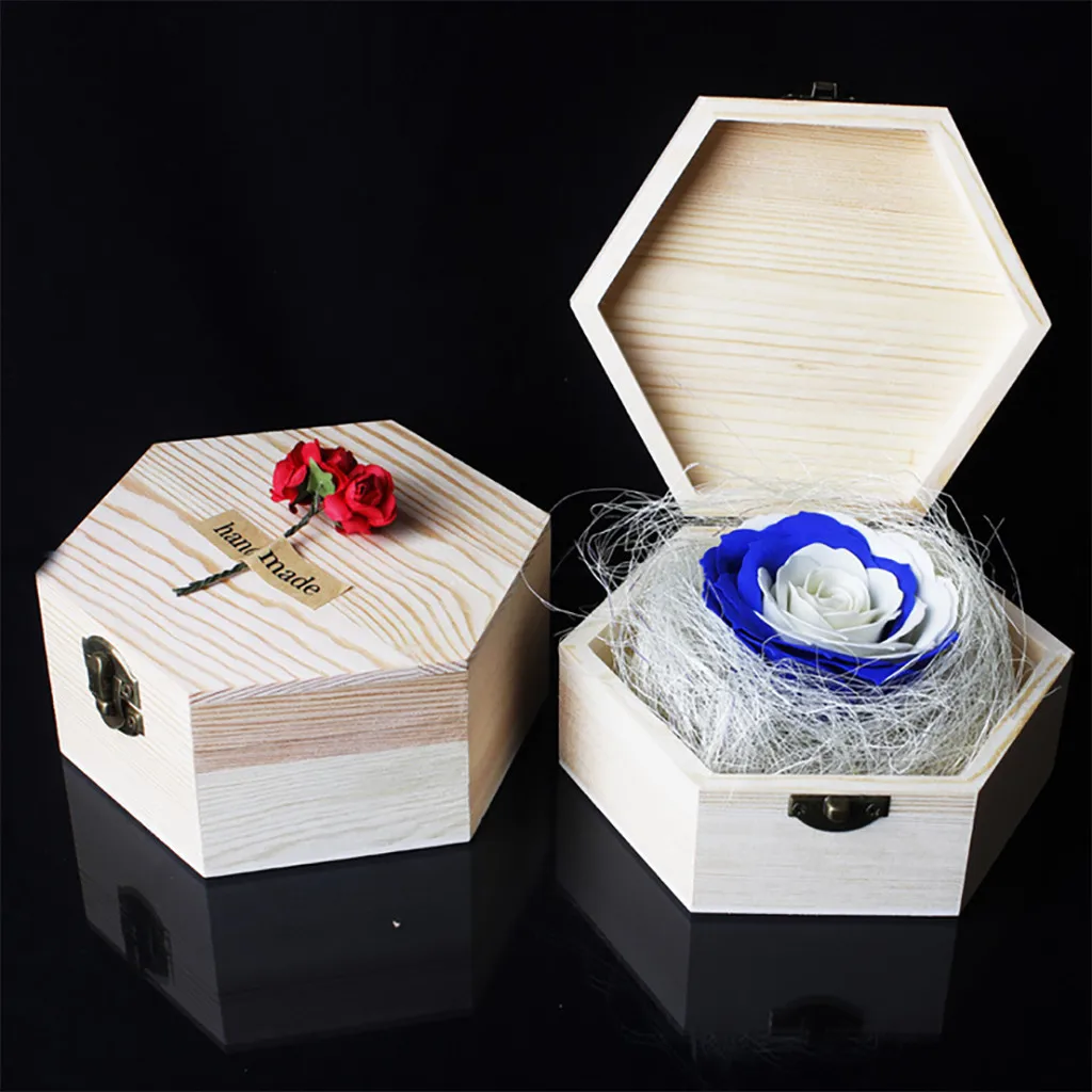 День Святого Валентина креативный подарок вечный цветок роза мыло цветок шестиугольник деревянная коробка