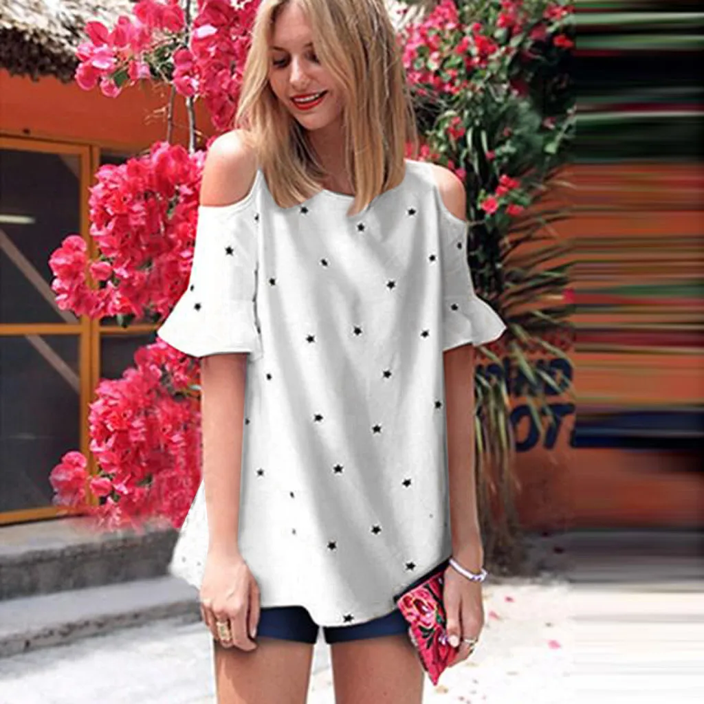 Особенности: Повседневный; Короткий рукав; Вырез лодочкой; Топы с цветочным принтом и оборками; Женские топы; Сезон осень-весна.