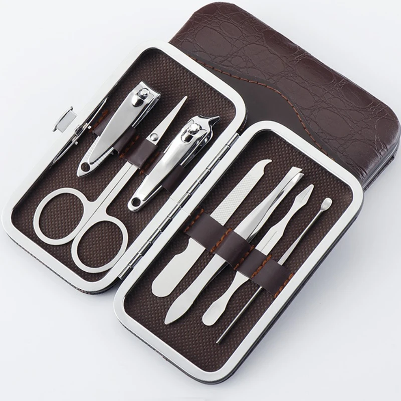Товар: комплект ножниц для маникюра Материал: нержавеющая сталь Набор: 7 шт. Посылка включает в себя: 1 x машинка для стрижки ногтей 1 x колючая машинка для стрижки ногтей 1 многофункциональные ножницы 1 x толкатель для ногтей 1 х пинцет 1 x Ушная палочка Пилка для ногтей-1 шт. Коробка-1 шт.