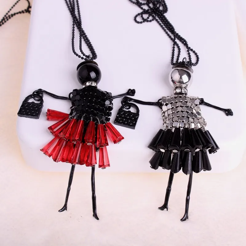 KPOP Кукольное милое женское ожерелье с подвеской 5 цветов, длинное ожерелье-свитер с цепочкой, модные украшения для девочек, стразы, Collier Femme