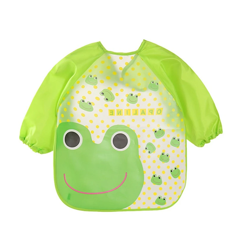 От 1 до 3 лет EVA/Детский фартук унисекс с длинными рукавами и рисунком животных для маленьких мальчиков и девочек, водонепроницаемый нагрудник для кормления A40