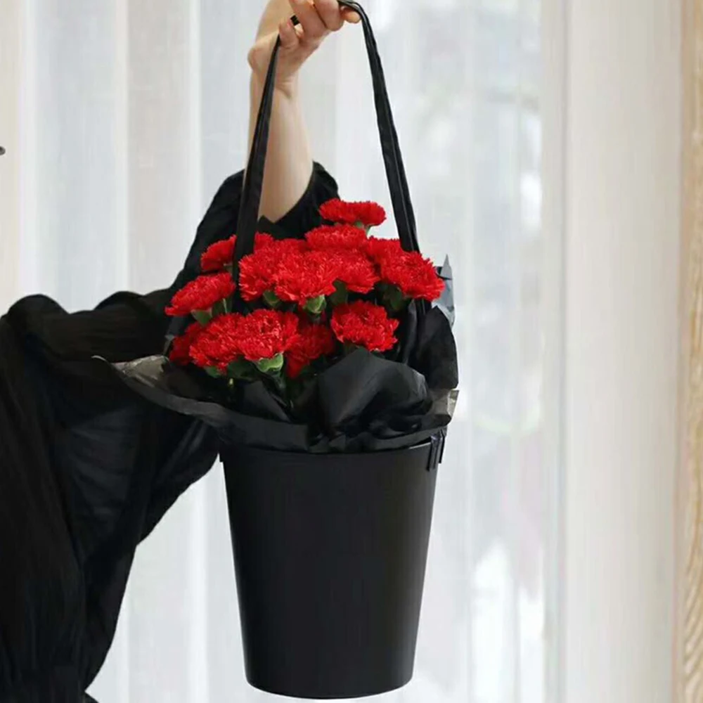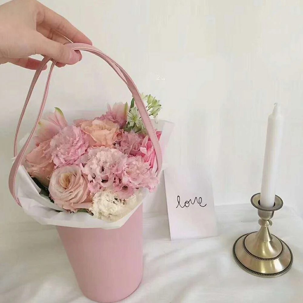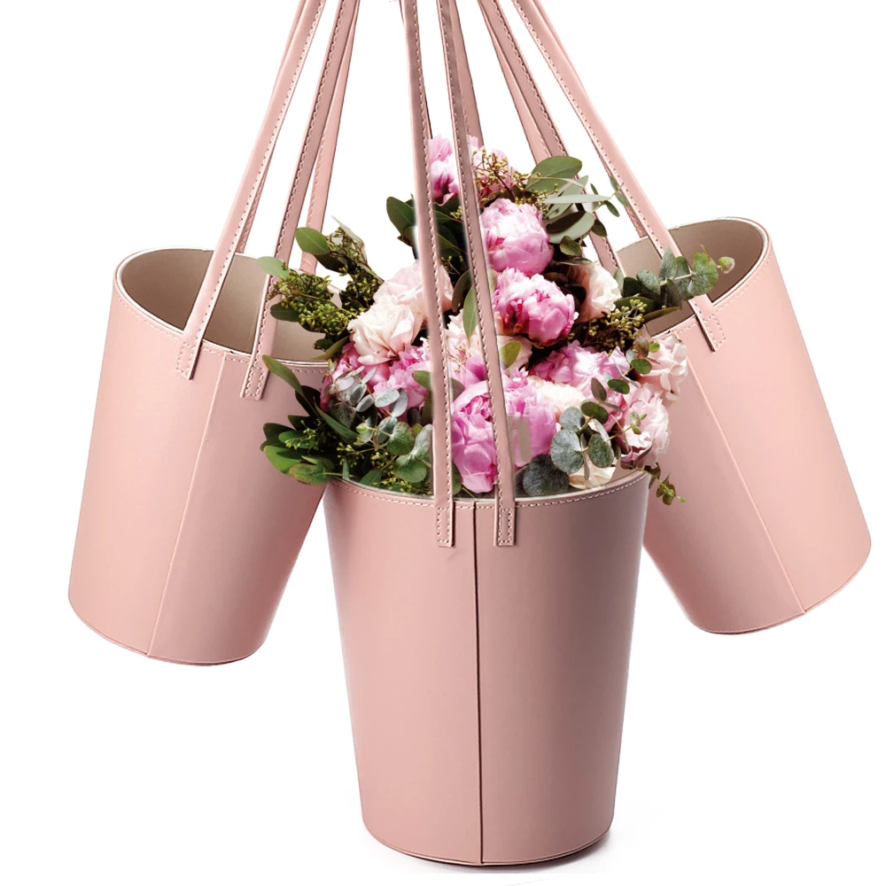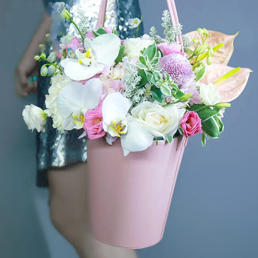 Portable Florist Leather Gift Box Packaging Box with Handle Flower Arrangement Floral Bouquet Bucket Wedding Party Decor