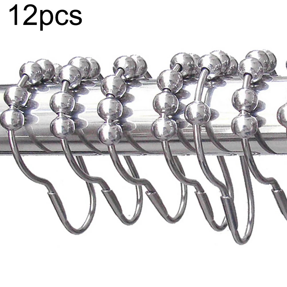 12 шт. металлическая Ванна занавеска роллер шар для душа занавеска кольцо роликовый шар драпировка Крючки вешалка петли для ванной Аксессуары для штор