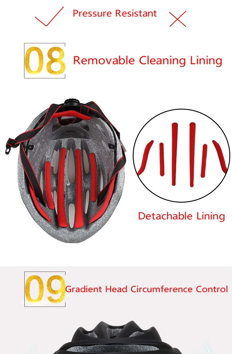 Сверхлегкий вес около 245 г Технология Unicase, более безопасная и идеальная. Вентиляция, использование воздушного охлаждения делает воздух свободным Анатомический дизайн, двухсторонняя бархатная защитная накладка Простота в использовании, с волшебной пряжкой Не хранить во влажной среде, рядом с источником тепла или непосредственно в светильник, шлем для сухой обработки, рекомендуется использовать парусиновую посылка для хранения.
