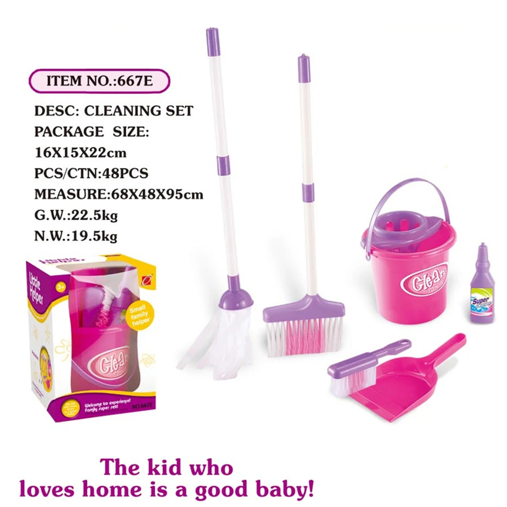 Маленькое ведро для мусора и кисть: используется для хранения некоторого мусора, высокопрактичный толстый материал, гладкий и без заусенцев. Щетка для форма очень реалистично и волосы аккуратно. Для удаления пятен ребенок может использовать кисть.