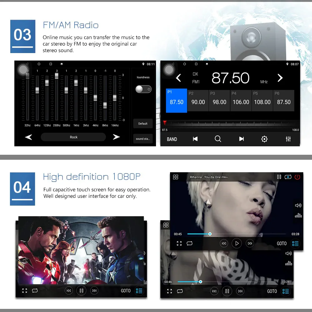 Разрешение: HD 1024*600 емкостный пресс-экран, 1080P HD видео воспроизведение