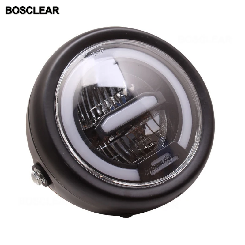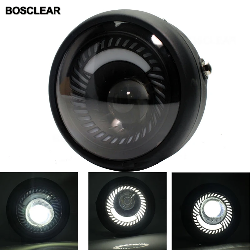6.5inch For CG125 GN125 Cafe Racer Bobber Custom Motorcycle Metal Projector DRL LED Front Headlight With Angel Eye Hi/Lo Beam