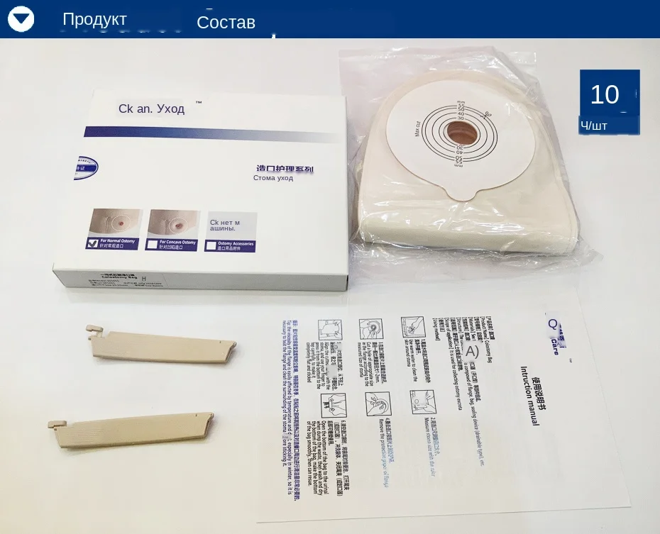 KangCare цельная система Одноразовые Сумки-колостомы Параметры: Тип: цельная система Материал: гидроколлоидная пластина и PE перформированная пленка Цвет: кожа прозрачная Диапазон резки: 25mm-55mm Размеры: 15*29 см Емкость: около 630 мл Продукт Особенности: * Цельный дизайн (простой и удобный) * Гидроколлоидный кожный барьер, с хорошей адгезией, низким содержанием остатка на коже * Полупрозрачный мешочек, легко для наблюдения * Полиэтиленовая перформированная пленка, дышащая, сухая и удобная * Зажим закрытия, быть удобным и прочным Сменные сумки Ostomy внимание: 1. Обратите внимание на слизистую стому, окружающие швы и окружающую кожу. 2. Очистите кожу вокруг стомы, уменьшите запах и Повышайте комфорт. 3. Предотвратить фекальную воду от загрязнения брюшного разреза через шасси утечки. 4. Если есть пропитка, обязательно Замените ее вовремя.