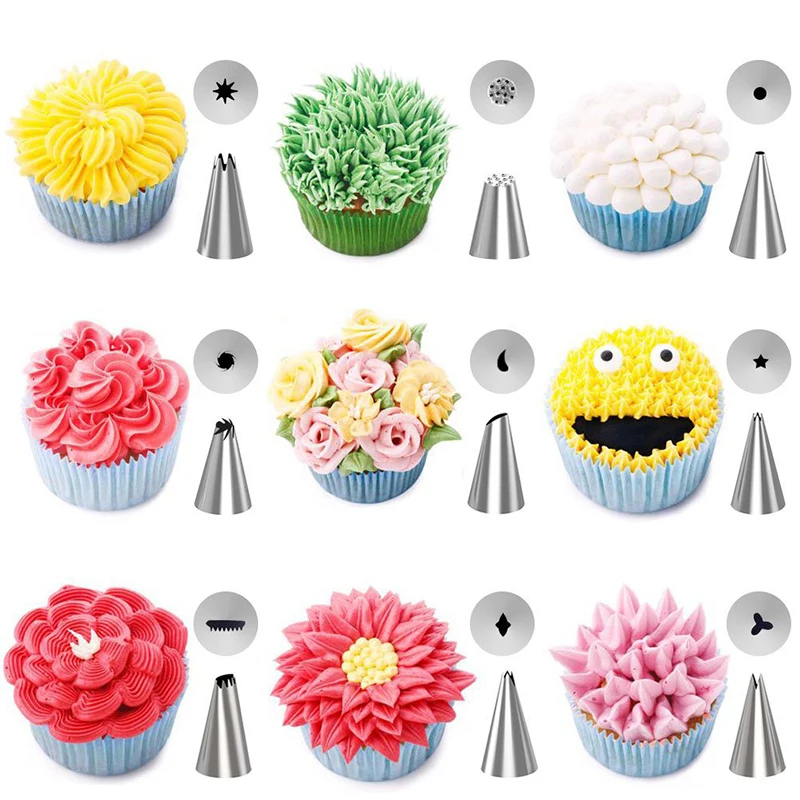 2. Инструменты для украшения торта: различные кончики торта, муфта, многоразовые мешки для трубопроводов, цветок ногтей и украшения ручки, которые вы можете создать все виды красивых узоров на торт, кексы и печенье.
