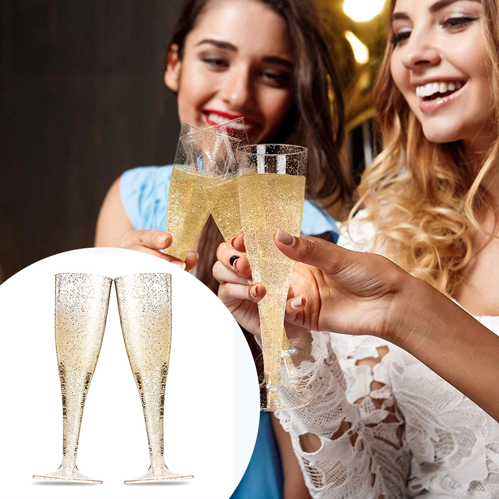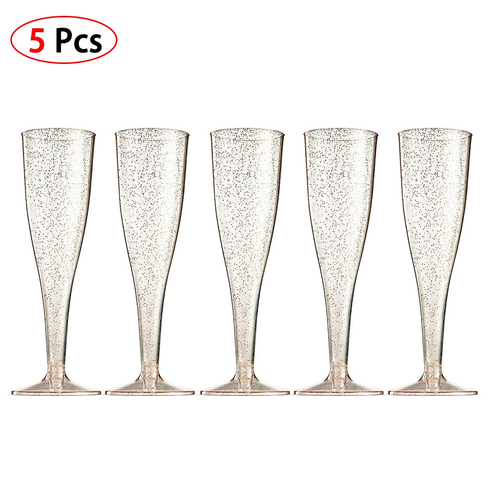 Название продукта: 5 шт. Золотой флэш одноразовые пластиковые бокалы для красного вина Коктейльные Вечерние стаканчики для свадебного напитка рождественские украшения для Западной кухни