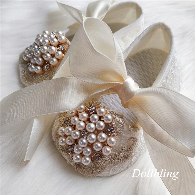 Высокая-конец пользовательские новые бокал для шампанского, с кружевом, с жемчугом, с пряжкой; Обувь для младенцев для маленьких принцесс; Обувь 100 дней;