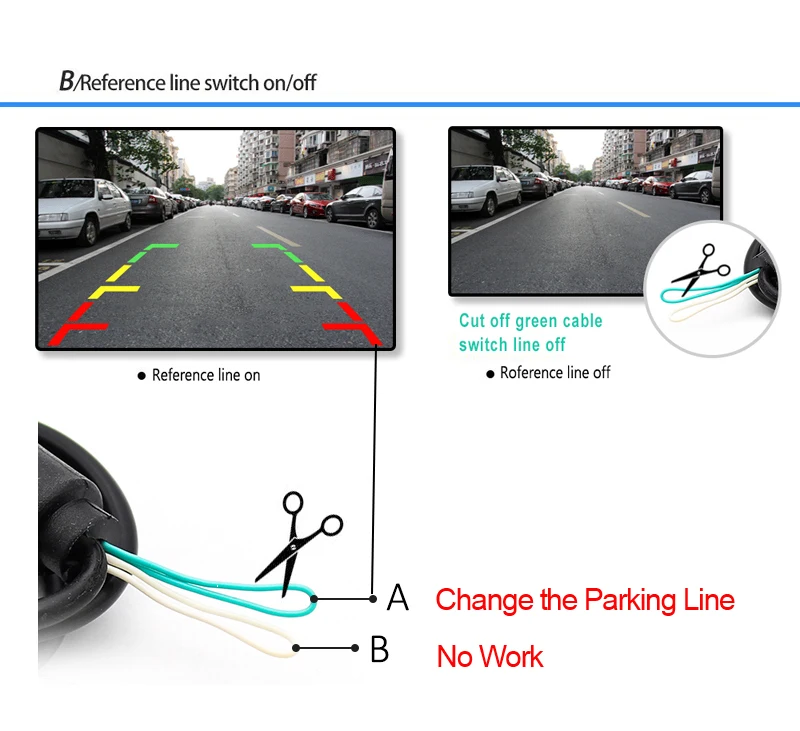 1) Using CCD digital image sensor designed for automotive rearview development design, using digital fill and software technology, clear image in daytime, and lower at night. 2) -35 to +60 temperature range of application, fully in line with the application of automotive environment. 3) The factory after the high pressure water immersion test and 12 hours on the electrical aging test, multilayer waterproof design, truly high pressure washing and immersion 4) 6m Video cable connection monitor, power cable connection car tail light power supply, reversing, reversing monitoring system automatically start working, you can clearly see the car after the situation 1. Image Sensor: Sony/MCCD 1409 Chip 2. TV system: NTSC / PAL Option 3. TV Line : 1000 TV Line 4. Effective Pixels: 1280 x 720 Pixels. 5. Low-light Level Night Vision , 15m visible distance for night . 6. Electronic Shutter: 1/50 to 1/100,000 seconds, 1/60 to 1/100,000 seconds 7. Video Output: 1.0Vpp, 75Ohm 8. White Balance: Auto 9. Power: DC 12V 10. Video Cable Length: 6M 11. Power Supply Cable Length: 1.5m 12. Fit for Android DVD player and Any TFT Car Monitor. 13. Cut the green wire . the camera image will display the parking Line .