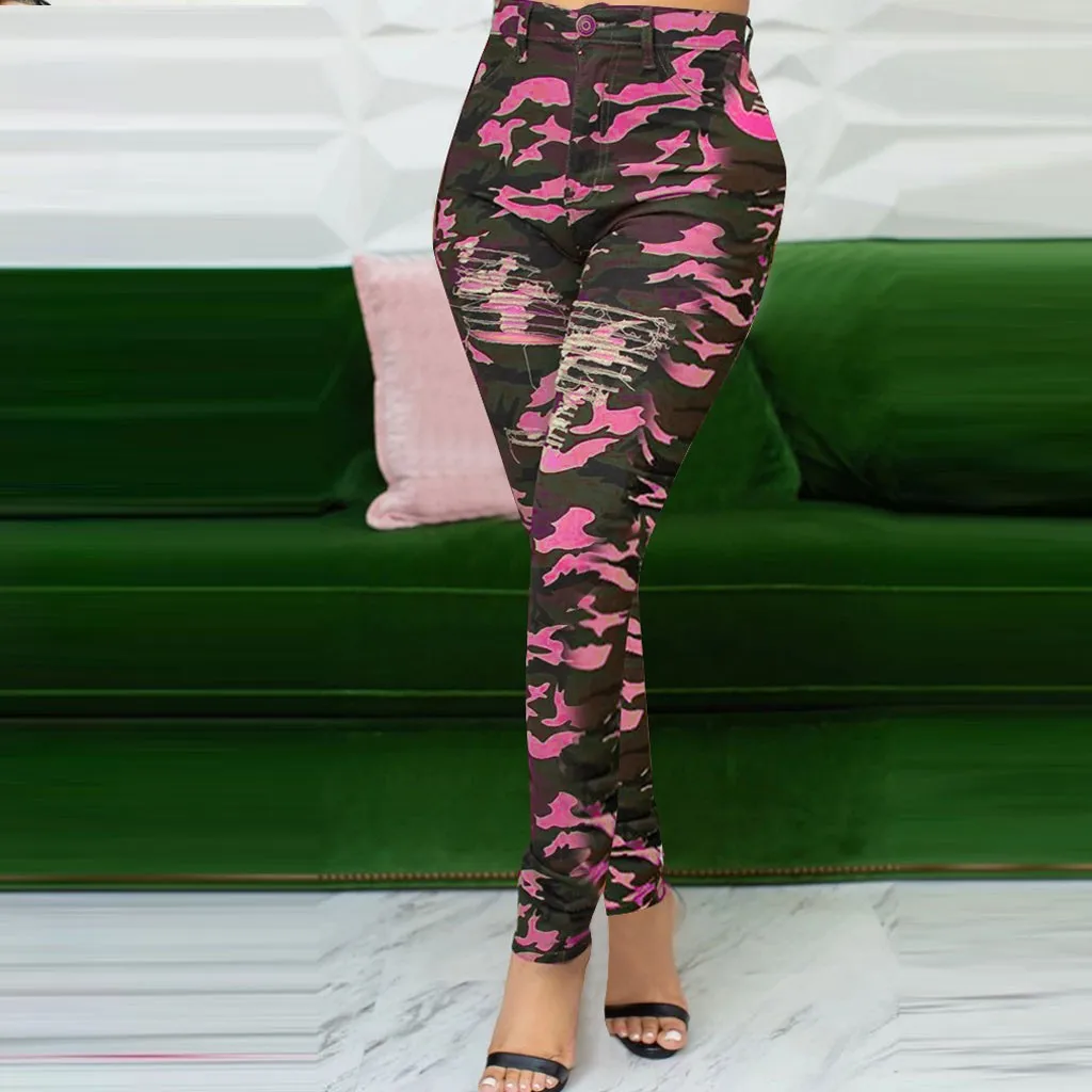 Женские зимние тонкие камуфляжные штаны с высокой талией и принтом горящих цветов для отдыха