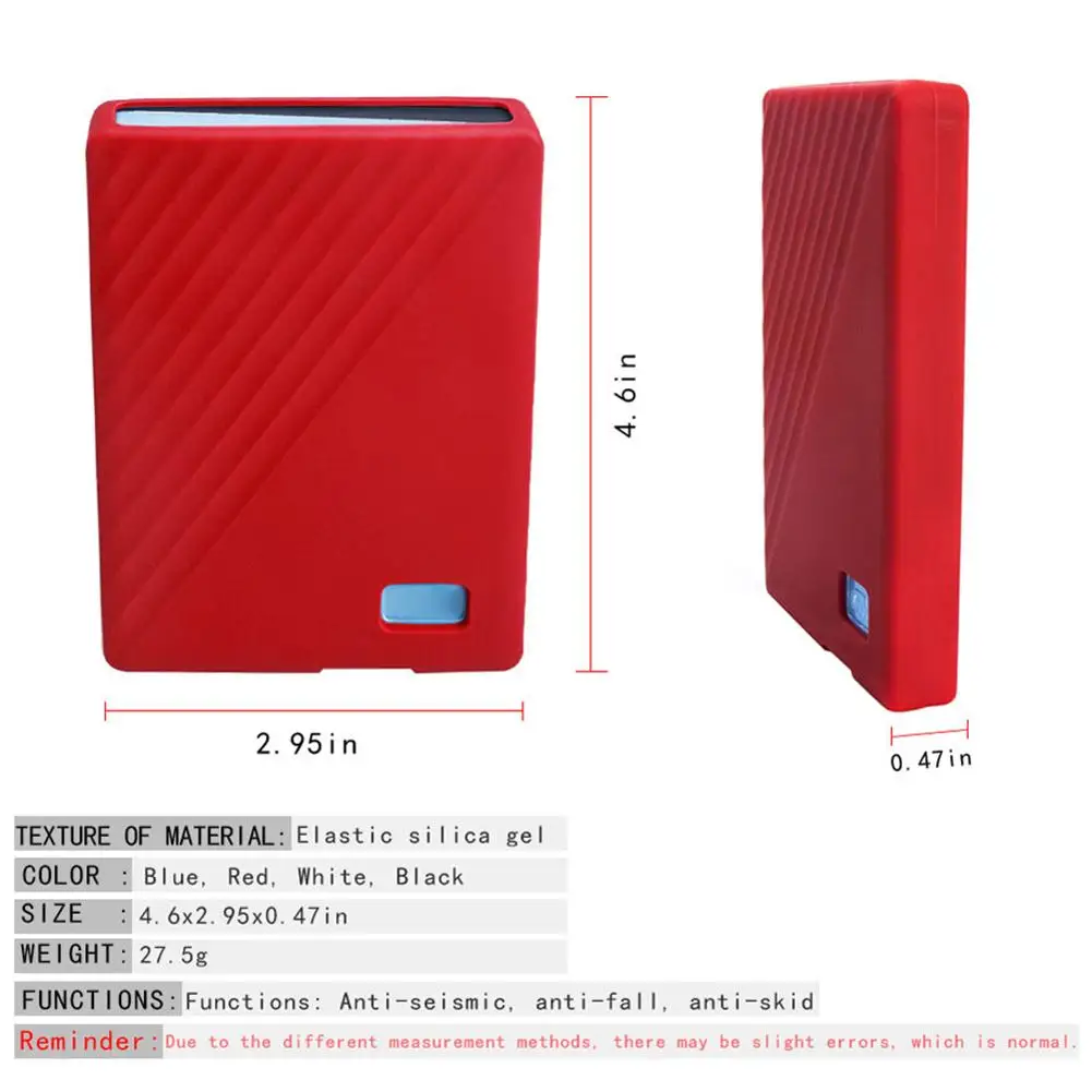 1. Супертонкий защитный чехол: 4 цвета (черный, белый, красный и синий) супертонкая упаковка, предназначен для WD My Passport 1 ТБ 2 ТБ 500 GB мобильный твердотельный накопитель SSD портативный SSD Внешний твердотельный жесткий диск, для предотвращения царапин, вмятин, ударов и падений.1 * Защитная крышка