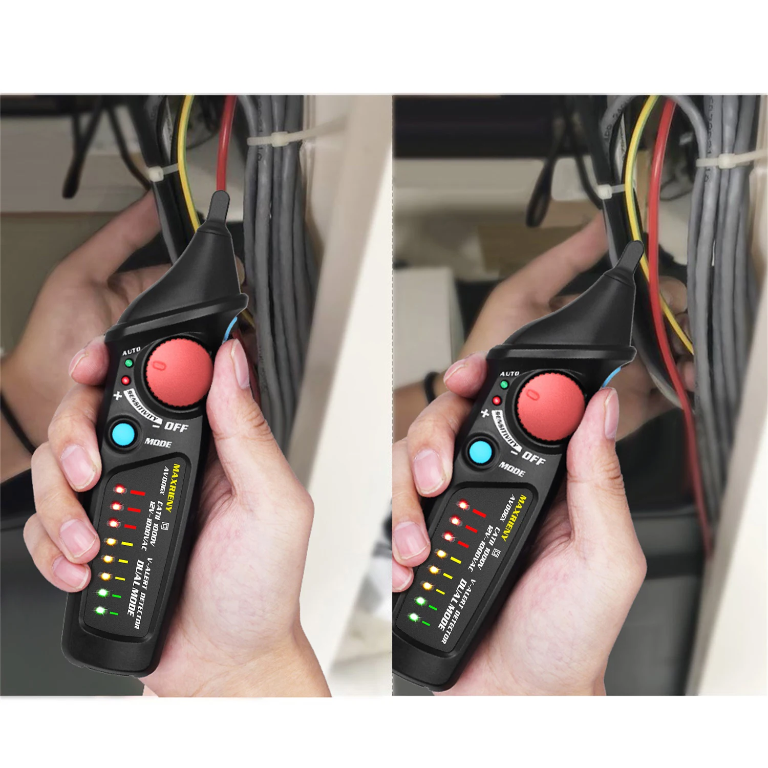 Live / Neutral wire distinguish: safe to distinguish live / neutral wire by comparing the detected voltage strength.