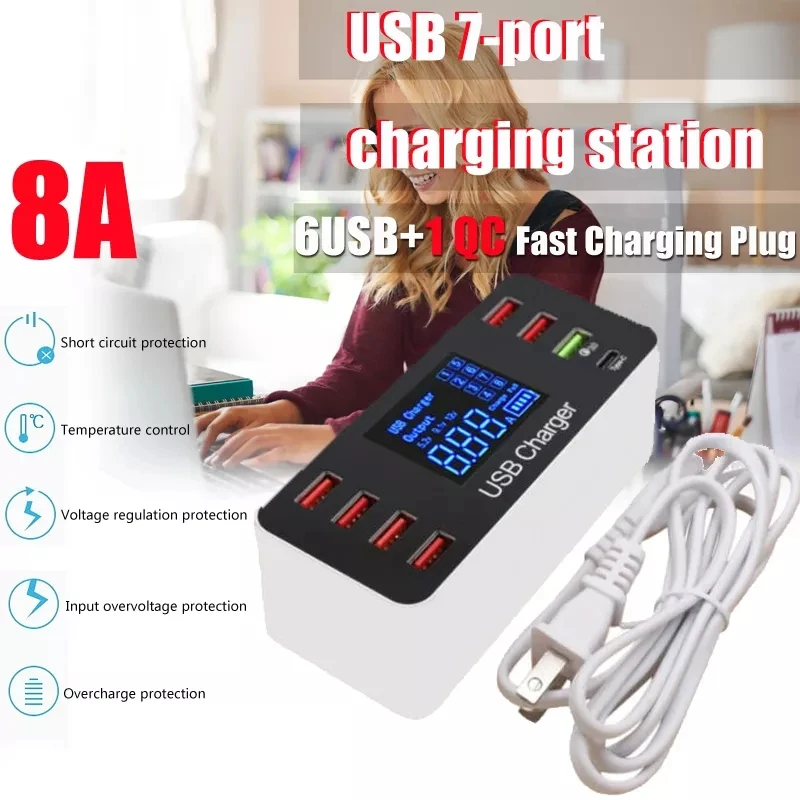 Название продукта: 7USB / Type-C / Q C3.0 умное зарядное устройство с дисплеем.