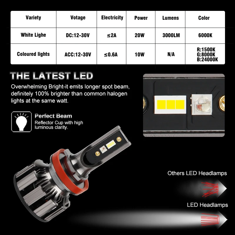 2 x светодиодный RGB лампы для фар (новое обновление): все-в-одном (встроенный вентилятор и драйвер)